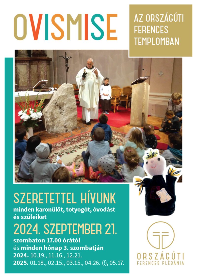 Minden hónap 3. szombatján 17.00 órától a kisgyermekeket – karonülőket, totyogókat, ovis gyerekeket – és családjaikat várjuk ovis misére a templomba.